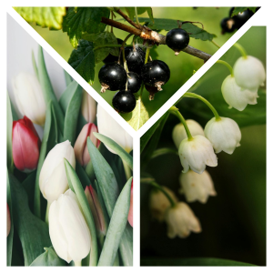 The heart blooms with an elegant bouquet of moguet, ivy, rose, uplifted by fresh green nuances.
